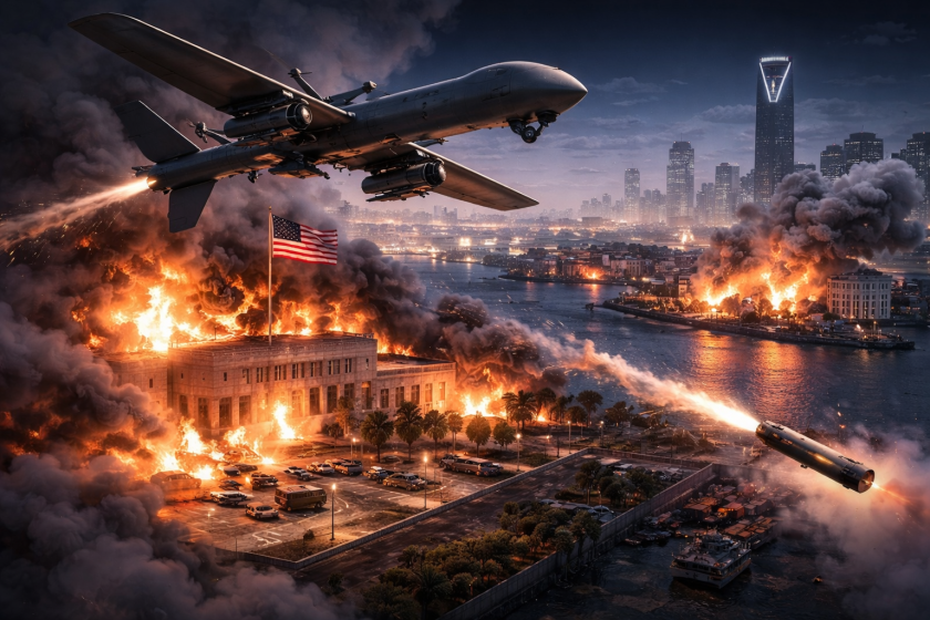 В последните часове Министерството на отбраната на Саудитска Арабия съобщи, че пожар е възникнал в американското посолство в столицата Рияд. Твърди се, че това се е случило след като то беше ударено от два безпилотни апарата. Съобщава се също за атака с дронове срещу търговския порт Дукм в Оман. Това увеличава напрежението в региона, където се намират важни военни обекти и американски активи.