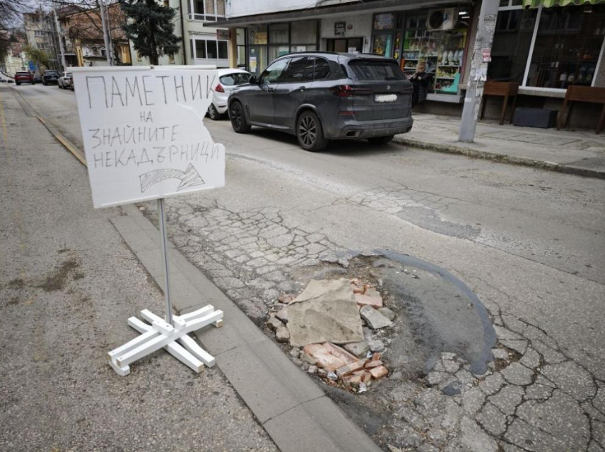 Жестът е директен и показателен. Вместо поредната публикация с оплакване, дупката е превърната в публичен знак. Посланието е ясно. Хората искат ремонт, а не обяснения.